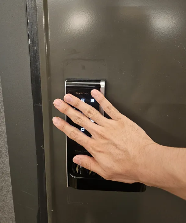 *Touch the door lock with your palm to illuminate the numbers.