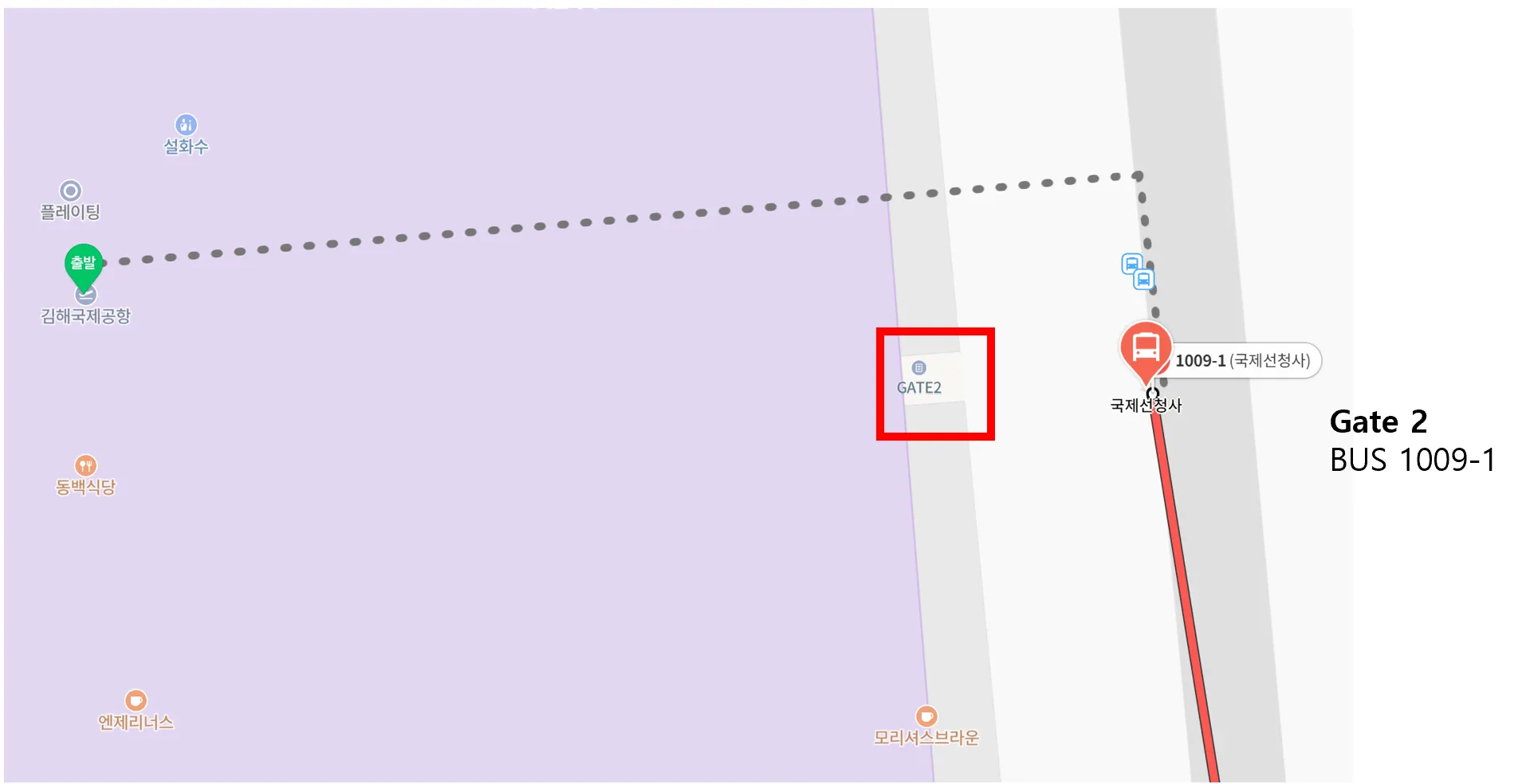 Gate 2 → Take Bus 1009-1From Gimhae Airport, exit through Gate 2 and take bus 1009-1